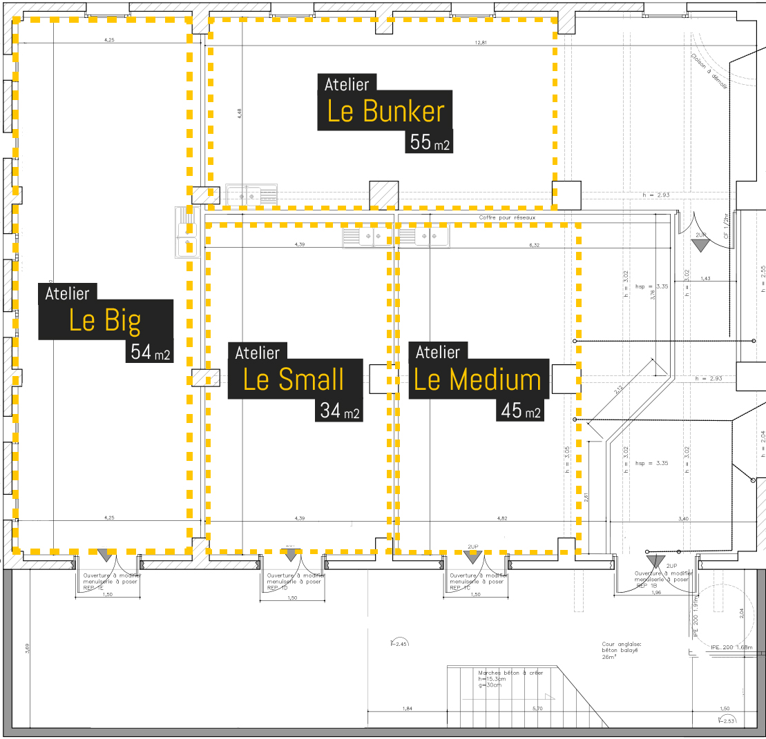 Des surfaces modulables sont proposées à la location, selon disponibilité. N’hésitez pas à nous contacter pour en savoir plus ou visiter le lieu